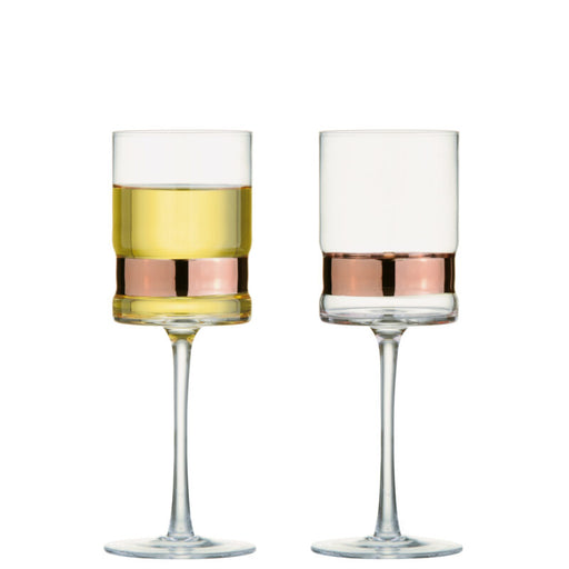 SoHo comprises a pair of champagne flutes, wine glasses and DOF tumblers, each of which are available in gold, silver and bronze, and all come packed in gift boxes with stunning metallic trim in various colours to match the glasses contained within.