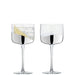Gently rising and falling, as the design navigates its way around the glass, both the gold and silver are bright and polished, thus giving a reflective, mirrored finish. It is added in a manner so that it does not obscure your drink, but instead, accents, the glass, its contents, and the setting in which it is placed.