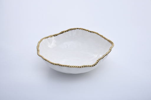 Pampa BayThe Pampa Bay Golden Salerno Small Bowl brings elegance to everyday snacking. Crafted from high-fired white porcelain with lustrous g...