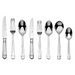 44 pc sets include 6 Dinner knives, 6 Dinner forks, 6 Dessert knives, 6 Dessert forks, 6 Dessert spoons, 6 Soup spoons, 6 Teaspoons and 2 Table spoons.