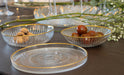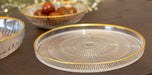 310017 - Goldline Striped Dessert Plate 16x16x2cm - AULICA Add a touch of elegance to your sweet moments with our carefully selected dessert plates. Designed to enhance your pastry creations, they transform each tasting into a refined experience. Whether classic, modern, ceramic, porcelain, or glass, our dessert plates adapt to all tables and occasions. Their meticulous design highlights every detail, from the simplest sweets to the most elaborate desserts. Because every detail matters, we pack each of our plates with the utmost care to ensure a smooth delivery and a consistently perfect table. Features: - Color: Transparent / Gold - Material: Glass - Dimensions: 16x16x2cm - Dishwasher safe: NO - Microwave safe: NO - Oven safe: NO